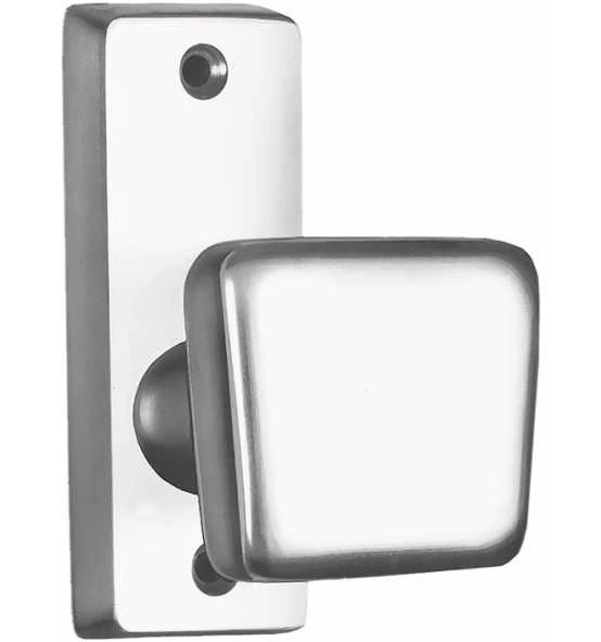 gerade · auf Vierkant-Rosette · Leichtmetall naturfarbig (F1) · kantige Form · 18 mm Führung · passend für alle Schlosskästen mit 8 mm Nuss · Edelstahl rostfrei Schrauben werden mitgeliefert · Schraubenlochabstand 67 mm · Rosette 32 x 87 x 7 mm · Türknopf 47 x 45 mm · DIN links/rechts Weitere technische Eigenschaften: · Schraublochabstand: 67mm · Typ: fest / drehbar · Vierkant: 8mm
