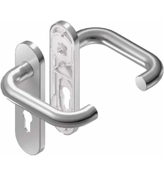 Objektbeschläge mit Federunterstützung für Wartungsfreie Drücker-Lagerung · Vierkant 9 mm · zugelassen nach DIN EN 1906 · Klasse 4 · Lochung PZ Weitere technische Eigenschaften: · Ergänzung: D/K · Lagerung: fest-drehbar-gelagert · Vierkant: 9mm