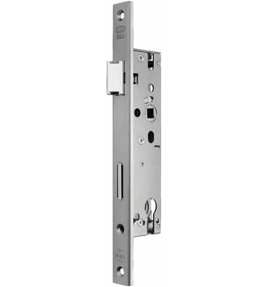 Wechselfunktion E · für einflügelige Türen · Feuerschutz · zugelassen nach DIN 18251-2 Klasse 3 und EN 12209 für Feuerschutztüren, EN 179 (Notausgänge) und EN 1125 (Paniktüren) · Falle aus Feinguss und Riegel aus Zink-Druckguss, 20 mm Riegelausschluss · 1-tourig · Entfernung 92 mm · mit durchgehender Nuss · 9 mm Vierkant Weitere technische Eigenschaften: · Hinterdornmaß: 15mm · Schlosskasten: oben und unten geschlossen · Schlossriegel: 1-tourig · Riegelausschluss: 20mm
