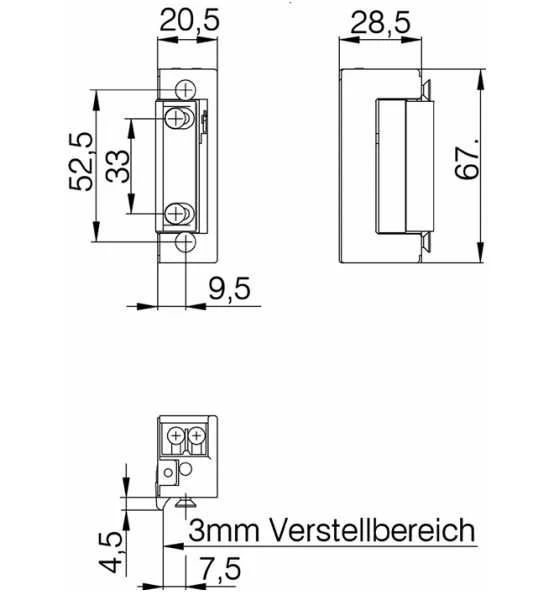 mit mechanischem Entriegelungshebel · Türöffnungsfalle um 3 mm verstellbar · symetrisches Modell daher Rechts/Links verwendbar · Gehäuse GD/Zn verzinkt Weitere technische Eigenschaften: · Aufbruchfestigkeit: 3500N