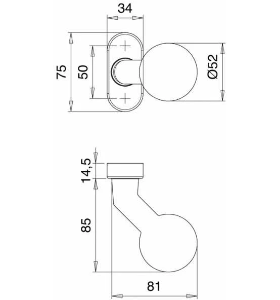 für Feuerschutz-Rahmentüren · gekröpft · fest auf ovaler Rosette · M 12 Gewinde · Rosette Stärke 14,5 mm · Höhe 75 mm · Breite 34 mm · unsichtbare Verschraubung · Lieferung ohne Stift und Schrauben Weitere technische Eigenschaften: · Typ: Profiltür · Ergänzung: gekröpft · Form: K4