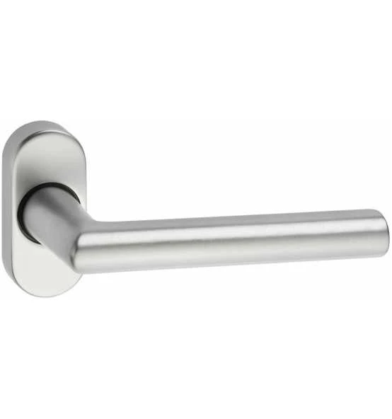 für Rahmentüren · gerade, fest/drehbar auf ovaler Rosette · mit Hochhaltefeder · Rosette Stärke 15 mm · Höhe 75 mm · Breite 34 mm · verdeckte Verschraubung · DIN links / rechts · Lieferung ohne Stift und Schrauben Weitere technische Eigenschaften: · Breite: 34mm · Drückerlänge: 130mm · Drückertiefe: 65mm · Stärke: 15mm · Anschlagrichtung: DIN links / rechts · Norm: DIN 1906 · Lagerung: fest-drehbar · Rosetten-Höhe: 75 mm