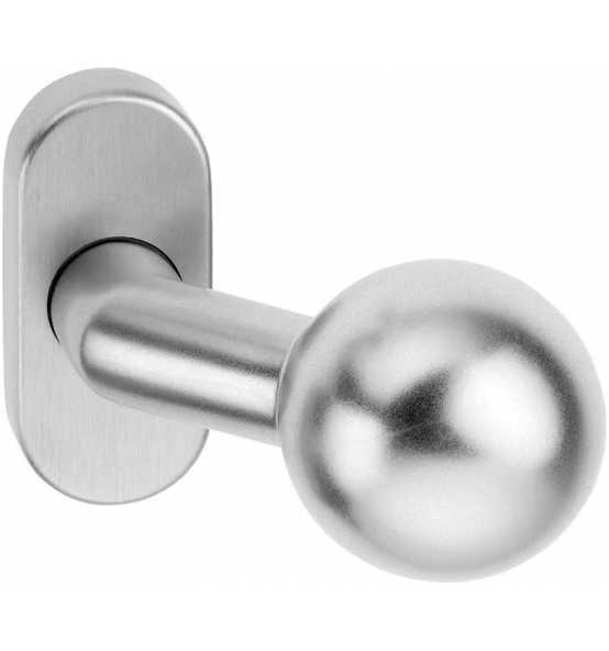 für Rahmentüren · schräg, auf ovaler Rosette · Vierkant 8 mm (ohne Stift) · Höhe 75 mm · Breite 34 mm · Stärke 14,5 mm · mit unsichtbarer Befestigung · fest/drehbar (federnd gelagert) · DIN links / rechts · Lieferung ohne Stift und Schrauben Weitere technische Eigenschaften: · Schraublochabstand: 50mm · Befestigungssystem: verdeckte Verschraubung · Rosettenform: oval · Rosetten-Breite: 34mm · Knopftiefe: 103mm · Anschlagrichtung: DIN links / rechts · Farb-Nr.: F1 · Knopfdurchmesser: 52mm · Rosetten-Höhe: 75mm