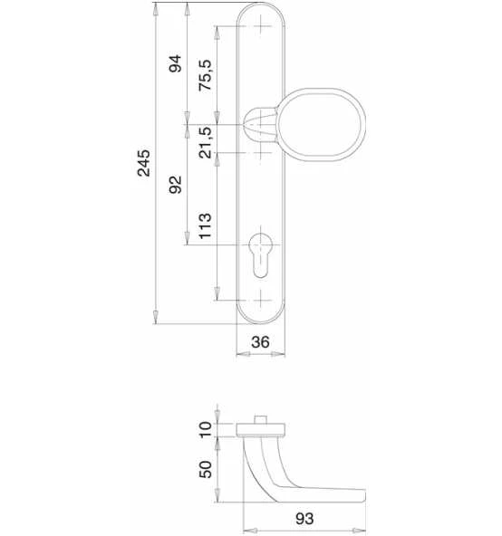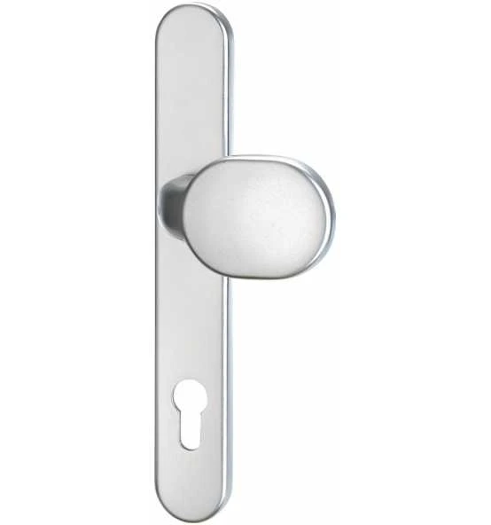 Wechselgarnitur für Rahmentüren · Entfernung 92 mm · Vierkant 8 mm · PZ-gelocht · Drücker fest-drehbar gelagert · mit Hochhaltefeder · Clipschildtechnik auf Druckgussunterkonstruktion · Stärke 10 mm · Höhe 245 mm · Breite 36 mm · Verschraubung von innen nach außen · unsichtbar verschraubt · DIN links / rechts · Lieferung ohne Stift und Schrauben Weitere technische Eigenschaften: · Ergänzung: Lieferung ohne Stift und Schrauben · Zylinderabdeckung: ohne ZA · Norm: DIN 1906 · Lagerung: fest/drehbar