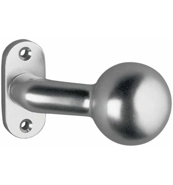 für Rahmentüren/Zäune/Tore · schräg, fest auf ovaler Rosette · Rosette Stärke 10 mm · Höhe 67,5 mm · Breite 30 mm · Schraublochabstand 50 mm · sichtbare Verschraubung · DIN links / rechts · Lieferung ohne Stift und Schrauben Weitere technische Eigenschaften: · Schraublochabstand: 50mm · Befestigungssystem: sichtbare Verschraubung · Rosettenform: oval · Rosetten-Breite: 30mm · Knopftiefe: 103mm · Anschlagrichtung: DIN links / rechts · Farb-Nr.: F1 · Knopfdurchmesser: 52mm · Rosetten-Höhe: 67,5mm