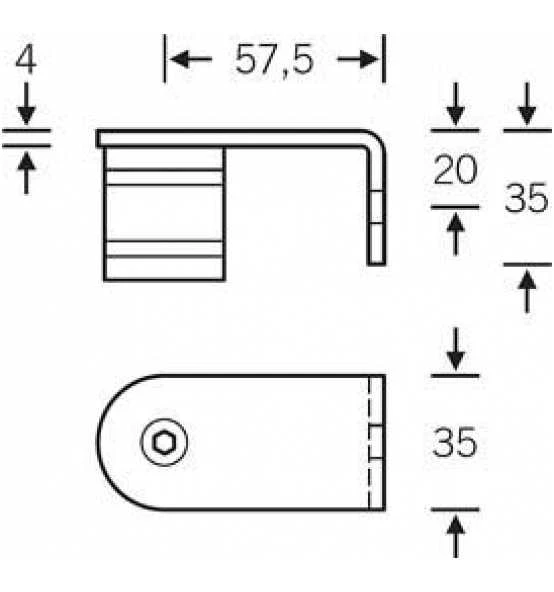 Gerade, Lasche 90° nach innen gewinkelt, passend für Rohr Ø 35 x 1,5 mm.