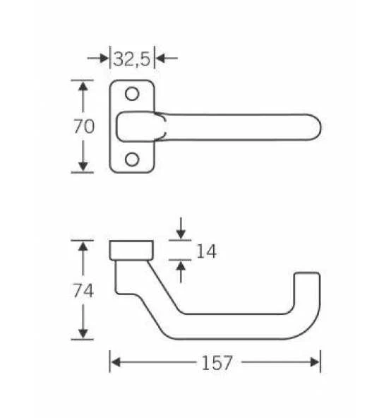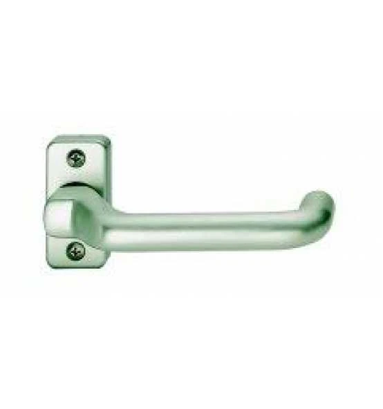Aluminium-Türgriff, gekröpft, auf eckiger Rosette, 70 x 32,5 mm, mit Hochhaltemechanismus,