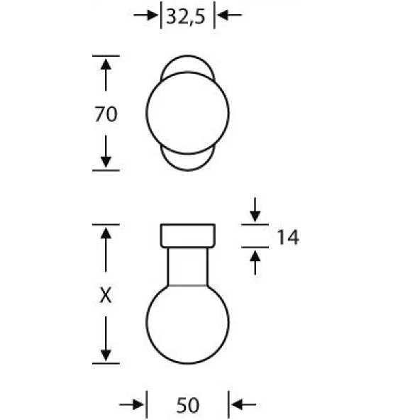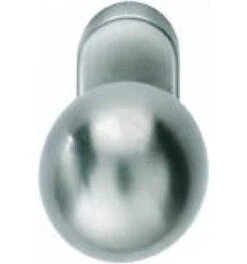 Edelstahl-Türknopf, rund, Ø 50 mm, auf ovaler Rosette, 70 x 32,5 mm, 8-mm-Vierkantloch, mit Hochhaltemechanismus, nicht sichtbare Befestigung.