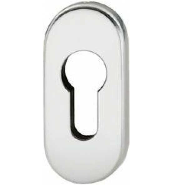 Aluminium-Deckrosette, oval, 70 x 32,5 mm, Unterschild aus Kunststoff mit Schraublöchern, 2-teilig,
