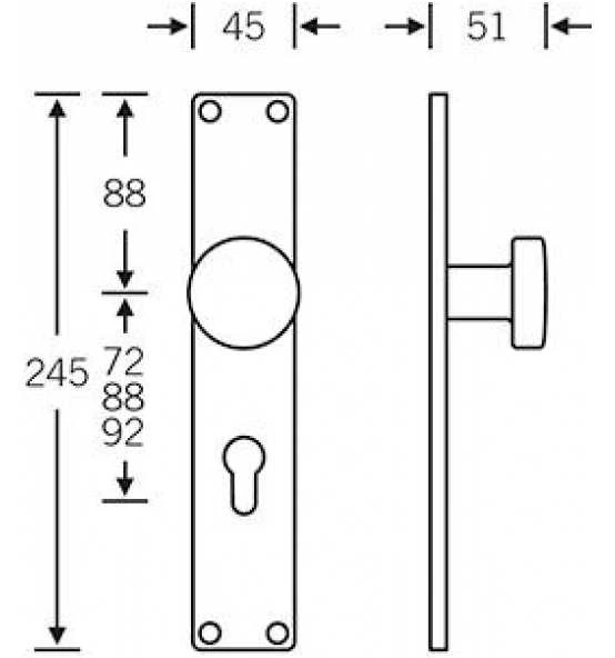 Aluminium, Entfernung 72 mm, 8 mm Vierkant, eckig, 245 x 45 mm, sichtbare Befestigung.