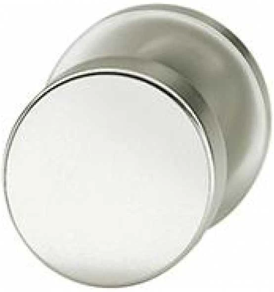 Edelstahl-Türknopf, rund, Ø 50 mm, auf runder Rosette, Ø 55 mm, 8 mm Vierkant-Aufnahme, Schraublochabstand 38 mm, nicht sichtbare Befestigung.