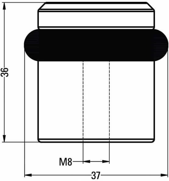 Aluminium silberfarbig eloxiert · mit schwarzem Gummiring (EPDM) · Innengewinde M8 · hergestellt in den Niederlanden · hergestellt aus mindestens 75% recyceltem Aluminium · ist 100% korrosionsbeständig · hat das Zertifikat ‚C2C Silber‘ Weitere technische Eigenschaften: · Modell: 4735