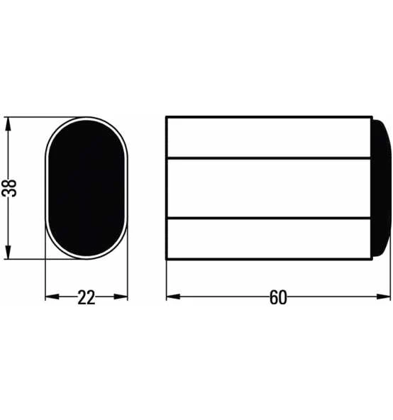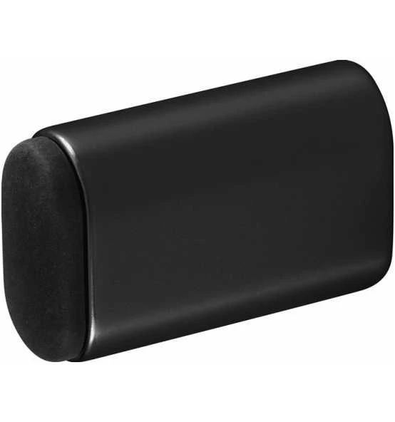 Türpuffer · Aluminium silberfarbig eloxiert · mit schwarzem Kunststoff · Höhe 38 mm · verdeckte Befestigung · in den Niederlanden hergestell · besteht zu mindestens aus 75% recyceltem Aluminium · ist 100% korrosionsbeständig · hat das Zertifikat ‚C2C Silber‘ Weitere technische Eigenschaften: · Befestigungsart: Dübelmontage · Ergänzung: verdeckte Verschraubung · Farb-Nr.: F18 · Höhe: 38mm