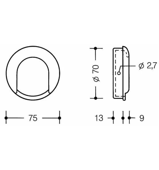 aus durchgefärbtem, mattem Polyamid · Durchmesser 75 mm, 22 mm hoch · Einlasstiefe 13 mm · mit Griffmulde von unten offen Weitere technische Eigenschaften: · Oberfläche: 90 tiefschwarz