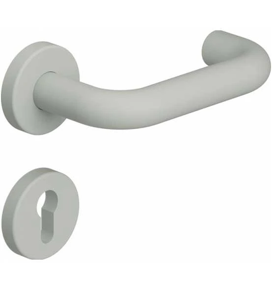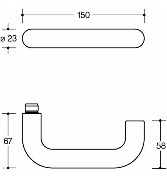 HEWI Zimmergarnitur in R-Technik · nach DIN 18255 und DIN EN 1906 · aus Polyamid · bestehend aus: Türdrücker 111.23PBR, Durchmesser 23 mm und Rundrosetten 305.23PBR und 306.23PB · Vierkant 8 mm · DIN links / rechts · der Drücker erfüllt die Vorgaben der DIN EN 179 und der DIN 18040 · Gebrauchs-Kategorie: nach DIN EN 1906 – Klasse 4 · Edition matt Weitere technische Eigenschaften: · Drückerlänge: 150mm · Befestigungssystem: Standardstift · Ergänzung: D/D · Drückertiefe: 67mm · Nockenabstand: 38mm · Farb-Nr.: 99 matt · Norm: DIN 1906