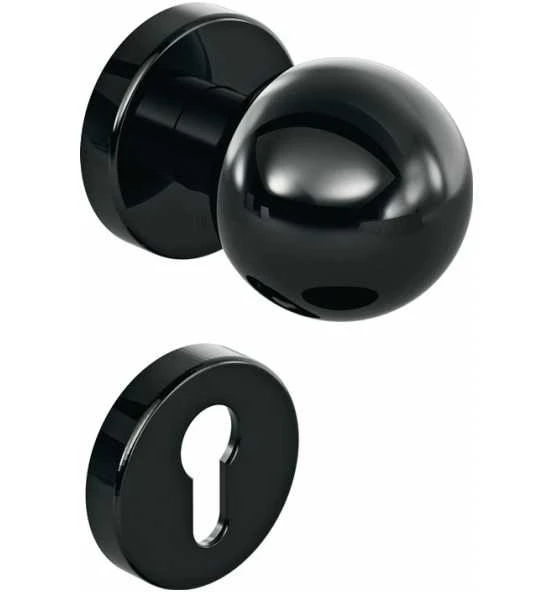 in R-Technik mit Rosetten nach DIN 18255 und DIN EN 1906 aus Polyamid, Oberfläche hochglänzend, bestehend aus: Knopf Modell 123.23R aus Polyamid und Türdrücker in U-Form aus Polyamid mit durchgehendem Stahlkern bis in das Drückerende, durchgängig eingefärbt, Durchmesser 20 mm, mit Ansatzführung und Rastnut, Montage durch einfaches Einrasten der Türdrücker in die auf der Tür vormontierten Unterteile. Die Rastung kann mittels Demontageschlüssel wieder gelöst werden. Der Drücker erfüllt die Vorgaben der DIN EN 179 und DIN 18040. Rosettenunterkonstruktion in Kunststoff-Edelstahlverbundbau, DIN links und DIN rechts verwendbar. Festdrehbarlagerung der Drücker mit selbsttätig einrastender Rundumverriegelung und 5 mm Lagerstelle als wartungsfreies Gleitlager mit elastischem Ausgleichsbereich und zweiter Lagerstelle im Drückerhals. Verdeckte, lockerungssichere Verschraubung mit M4 Schrauben- und Hülsenschraubenkombination sowie Stützzapfen. Wechselgarnitur vorgerichtet für PZ Rosetten-Abdeck-Kappe, rund, aus Polyamid durchgängig eingefärbt, Durchmesser 55 mm, 13 mm hoch, gewölbt, 1,5 mm Wandstärke. Ausgelegt und geprüft für den Objektbereich, Benutzer-Kategorie nach DIN EN 1906 – Klasse 4 Garnitur, mit Vierkantstift 8 mm, für Türstärke 38-48 mm · Drückerlänge 138 mm · Wechselgarnitur Weitere technische Eigenschaften: · Drückerlänge: 138mm · Befestigungssystem: R-Technik · Ergänzung: D/K · Drückertiefe: 65,5mm · Knopf: Kugel · Nockenabstand: 38mm · Farb-Nr.: 90 · Norm: DIN 1906