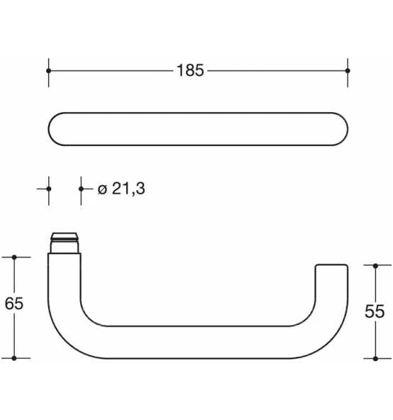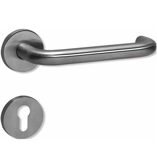 Zimmergarnitur · in H-Technik nach DIN 18255 und DIN EN 1906 aus Edelstahl, Oberfläche matt geschliffen, bestehend aus: Türdrücker 112XAH, Durchmesser 21,3 mm, Rundrosetten 305.21XAH und 306.23XA, mit integriertem Hochhaltemodul mit Federunterstützung · der Drücker erfüllt die Vorgaben der DIN EN 179 und DIN 18040 · Gebrauchskategorie: Klasse 4 Garnitur mit Vierkantstift 8 – 8,5 mm · Ausführungsvorschlag! Bitte alle Maße und baulichen Gegebenheiten im Auftragsfall prüfen! Weitere technische Eigenschaften: · Norm: DIN EN 179 / DIN 18040