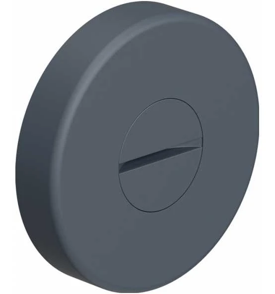 WC-Rosette lange Nocken · Außenrosette mit Schauscheibe (Anzeige rot/weiß) und Notöffnung mittels Münze (FBM) · Polyamid durchgängig eingefärbt · Rosettenunterkonstruktion aus Kunststoff · DIN links und DIN rechts verwendbar · in das Türblatt eintauchenden Stützdehnzapfen · Rosetten-Abdeck-Kappe, rund, Durchmesser 55 mm, 10,5 mm hoch, 1,5 mm Wandstärke · Edition matt Weitere technische Eigenschaften: · Farb-Nr.: 90