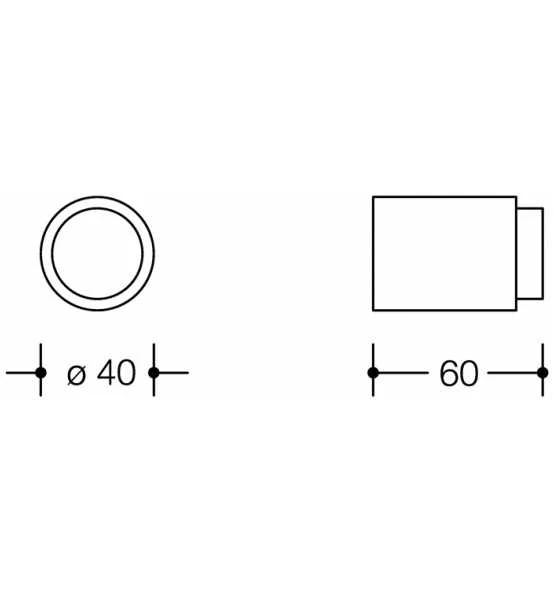 aus Polyamid · Durchmesser 40 mm · 60 mm lang · mit gefedertem schwarzem elastischen Puffer · diebstahlgeschützt durch verdeckte Verschraubung Weitere technische Eigenschaften: · Befestigungsart: Dübelmontage · Ergänzung: verdeckte Verschraubung · Farb-Nr.: 99