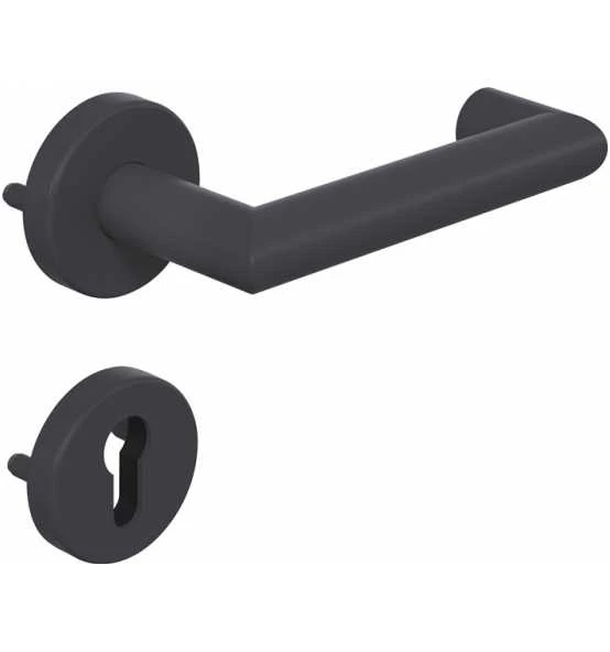 in R-Technik nach DIN 18255 und DIN EN 1906 aus mattem Polyamid, bestehend aus: Türdrücker 165.21PBR, Durchmesser 21,3 mm und Rundrosetten 305.21PBR und 306.23PB · der Drücker erfüllt die Vorgaben der DIN EN 179 · Gebrauchskategorie: Klasse 4 mit Vierkantstift 8 – 8,5 mm · Ausführungsvorschlag! Bitte alle Maße und baulichen Gegebenheiten im Auftragsfall prüfen! Weitere technische Eigenschaften: · Befestigungssystem: Standardstift · Farb-Nr.: 92m · Norm: DIN EN 179