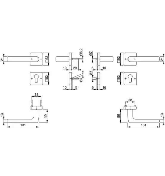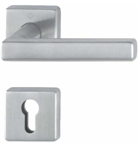 Edelstahl-Feuerschutz-Rosetten-Türgriff-Garnitur mit PZ Schlüsselrosetten für Innentüren · geprüft nach DIN 18273 und DIN EN 1906: 47-D1150A und PIVCERTPlus (1.000.000 Prüfzyklen) · Objekt-Garnitur · Lagerung: Türgriffe fest/drehbar, Rückholfedern · HOPPE-Steckgriff-Verbindung mit Kugel-Arretierung Sertos® · wartungsfreie Gleitlager · Verbindung: HOPPE-Profilvollstift 9 mm · Unterkonstruktion: Stahl · Stütznocken · Befestigung: verdeckt, durchgehend, Gewindeschrauben M4 · Lochung PZ · DIN links / rechts verwendbar · Drückergarnitur Weitere technische Eigenschaften: · Ergänzung: D/D · Norm: DIN 18273 · Lagerung: fest-drehbar-gelagert · Vierkant: 9mm
