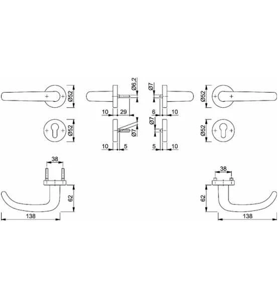 HOPPE-Feuerschutz-Rosetten-Garnitur mit PZ Schlüsselrosetten für Innentüren · geprüft nach DIN 18273 und DIN EN 1906: 47-D1150A und PIVCERTPlus (1.000.000 Prüfzyklen) · mitgeprüft in Notausgangsverschlüssen nach DIN EN 179 · Objekt-Garnitur · Lagerung: Türgriffe fest/drehbar · Rückholfedern · HOPPE-Steckgriff-Verbindung mit Kugel-Arretierung Sertos® · wartungsfreie Gleitlager · Verbindung: HOPPE-Profilvollstift 9 mm · Unterkonstruktion: Stahl · Stütznocken · Befestigung: verdeckt, durchgehend, Gewindeschrauben M4 · Besonderheit: Türgriffe mit Stahlkernen · Lochung PZ · DIN links / rechts verwendbar · Drückergarnitur Weitere technische Eigenschaften: · Ergänzung: D/D · Norm: DIN 18273 · Lagerung: fest-drehbar-gelagert · Vierkant: 9mm