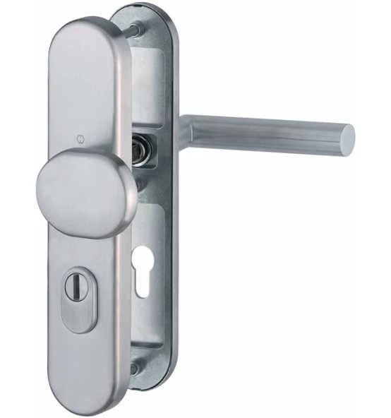für Außentüren · geprüft nach DIN 18257 und DIN 18273 · Türgriff fest/drehbar gelagert · wartungsfreies Gleitlager · Profilvollstift-Verbindung · Stahl-Unterkonstruktion inkl. Stütznocken · verdeckt, durchgehende Befestigung · Lochung PZ · Vierkant 9 mm · Material Edelstahl matt · für Türstärke 42-47 mm · DIN links / rechts verwendbar · Entfernung 72 mm Weitere technische Eigenschaften: · Ergänzung: D/K · Widerstandsklasse: ES 1 · Zylinderabdeckung: mit ZA · Norm: DIN 18273 · Lagerung: fest-drehbar-gelagert · Vierkant: 9mm