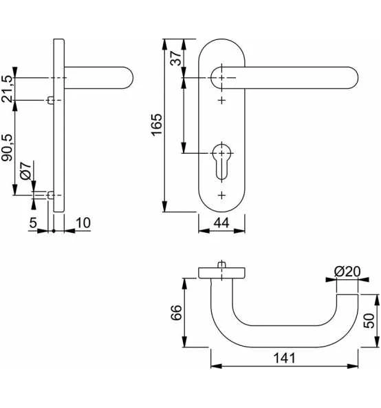 Türgriffe für Steckgriff-Verbindung mit Kugel-Arretierung