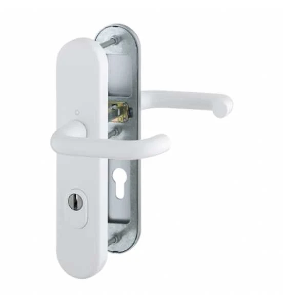Ausführung: Türgriffgarnitur 92/10 mm für Haustüren, PZ, F9016 weiß beschichtet