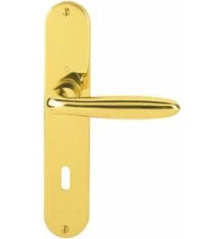 HOPPE-Messing-Innentür-Langschild-Garnitur (Türgriff-Garnitur): geprüft nach DIN EN 1906 (Benutzungs-Kategorie 3), Türgriffe mit HOPPE-Schnellstift-Verbindung (mit HOPPE-Vollstift), Schilder sichtbar verschraubt.