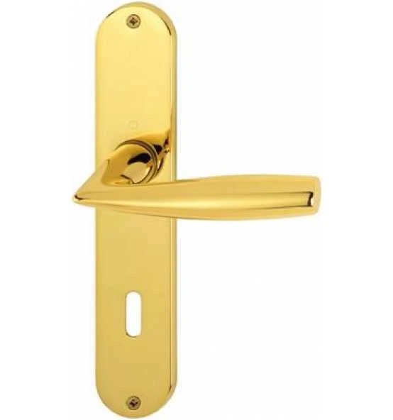 HOPPE-Messing-Innentür-Langschild-Garnitur (Türgriff-Garnitur): geprüft nach DIN EN 1906 (Benutzungs-Kategorie 3), Türgriffe mit HOPPE-Schnellstift-Verbindung (mit HOPPE-Vollstift), Schilder sichtbar verschraubt.