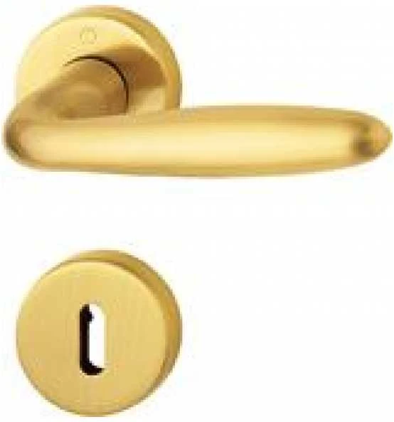 HOPPE-Messing-Innentür-Rosetten-Garnitur (Türgriff-Garnitur): geprüft nach DIN EN 1906 (Benutzungs-Kategorie 3), Türgriffe mit HOPPE-Schnellstift-Verbindung (mit HOPPE-Vollstift), Rosetten mit Kunststoff-Unterkonstruktion, Rückholfeder und Stütznocken, verdeckte, durchgehende Verschraubung mit selbstschneidenden Gewindeschrauben.