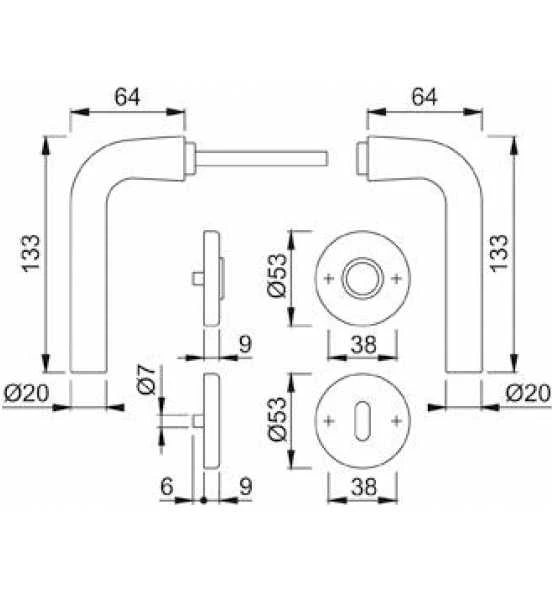 HOPPE-Aluminium-Innentür-Rosetten-Garnitur (Türgriff-Garnitur): geprüft nach DIN EN 1906 (Benutzungs-Kategorie 3), Türgriffe mit HOPPE-Schnellstift-Verbindung (mit HOPPE-Vollstift), Rosetten mit Kunststoff-Unterkonstruktion, Rückholfeder und Stütznocken, verdeckte, durchgehende Verschraubung mit selbstschneidenden Gewindeschrauben.