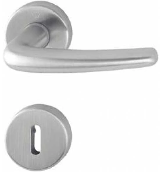 HOPPE-Edelstahl-Innentür-Rosetten-Garnitur (Türgriff-Garnitur): geprüft nach DIN EN 1906 (Benutzungs-Kategorie 3), Türgriffe mit HOPPE-Schnellstift-Verbindung (mit HOPPE-Vollstift), Rosetten mit Kunststoff-Unterkonstruktion, Rückholfeder und Stütznocken, verdeckte, durchgehende Verschraubung mit selbstschneidenden Gewindeschrauben.