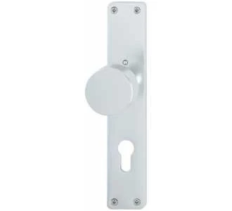 HOPPE-Aluminium-Knopflangschild: sichtbar verschraubt, ohne Stift.