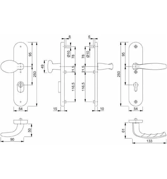 im Außen- und Zamak-Unterkonstruktion im Innenschild; außen: gekröpfter, feststehender Knopf