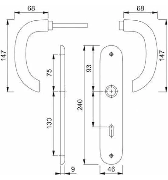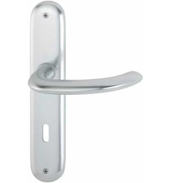 HOPPE-Aluminium-Innentür-Langschild-Garnitur (Türgriff-Garnitur): geprüft nach DIN EN 1906 (Benutzungs-Kategorie 3), Türgriffe mit HOPPE-Schnellstift-Verbindung (mit HOPPE-Vollstift) und Rückholfeder, Schilder sichtbar verschraubt.