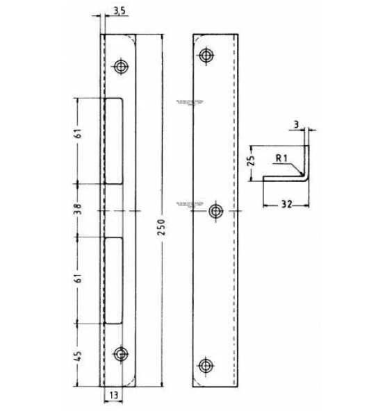 250 x 32 x 25 x 3 mm, hell-verzinkt, käntig.