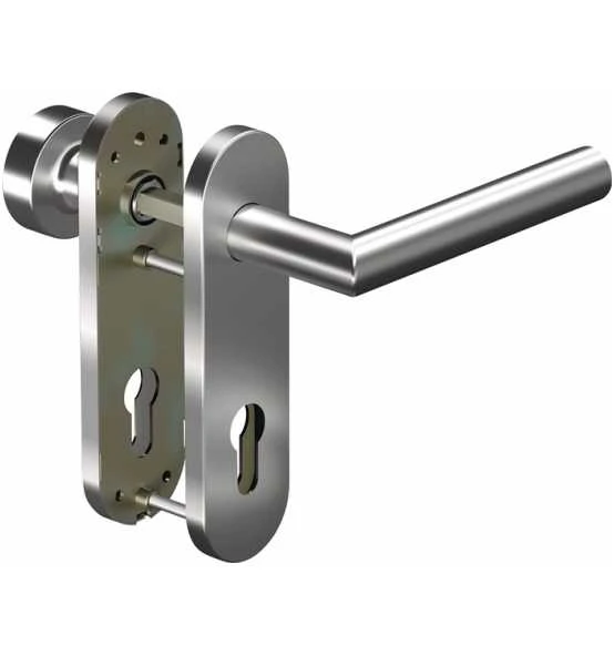 Feuerschutz-Kurzschild-Garnitur · DIN links / rechts · Vierkant 9 mm · Entfernung 72 mm · Drückergarnitur = beidseitig Drücker / Wechselgarnitur = außen Knopf 3020 · für Türstärke 38-63 mm Lieferung als Komplettgarnitur Weitere technische Eigenschaften: · Ergänzung: D/K · Lagerung: fest / fest-drehbar · Vierkant: 9mm
