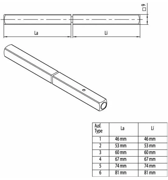 mittig geteilt · Vierkant 9 mm · zum Einsatz an Fluchttüren nach DIN EN 179 · nur in Verbindung mit OGRO-Beschlägen verwenden Weitere technische Eigenschaften: · Ausführung: symmetrisch