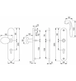 Hoppe ZT-Schutz-Drückergarnitur, PZ, E72, VK8, Amsterdam, Mit Langsch., Stützn., EDSTA, F69