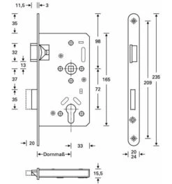 SSF Panik-Einsteckschloss Ser.20 APD Fkt.D Rd 20/55/72/9mm DIN Re.VA
