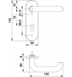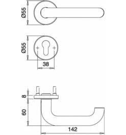 Dieckmann Drücker-Halbgarnitur,1133/2033,VK8,ER Ar, Serie Ares, 8mm VKT, CL-Form, Doppelt Gekröpf