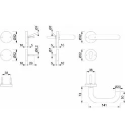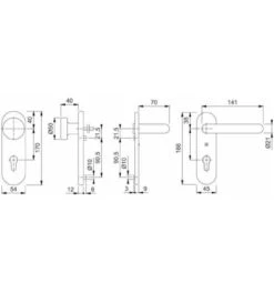 Hoppe FS-Garnitur Ams.FS-1400/42H/42HS Alu.F1 D/D TS 40-65mm PZ Rd.DIN L/R