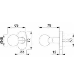 Hoppe PT-Knopfrosette, RH12, ER, E58G/55, Knopf Fest Auf Rosette, Oval, Verd.verschr., F69
