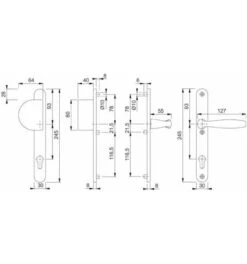 Hoppe PT-Wechselgarnitur, PZ, E92VK8, Luxembourg Mit Langsch., Stützn., Rückholf., ALU, F1-2